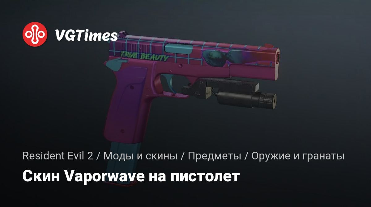 Мод для Resident Evil 2 добавляет в игру новый скин для пистолета JMB Hp3, который выполнен в стиле Vaporwave: фиолетовая / красная / и неоново-синяя сетка.