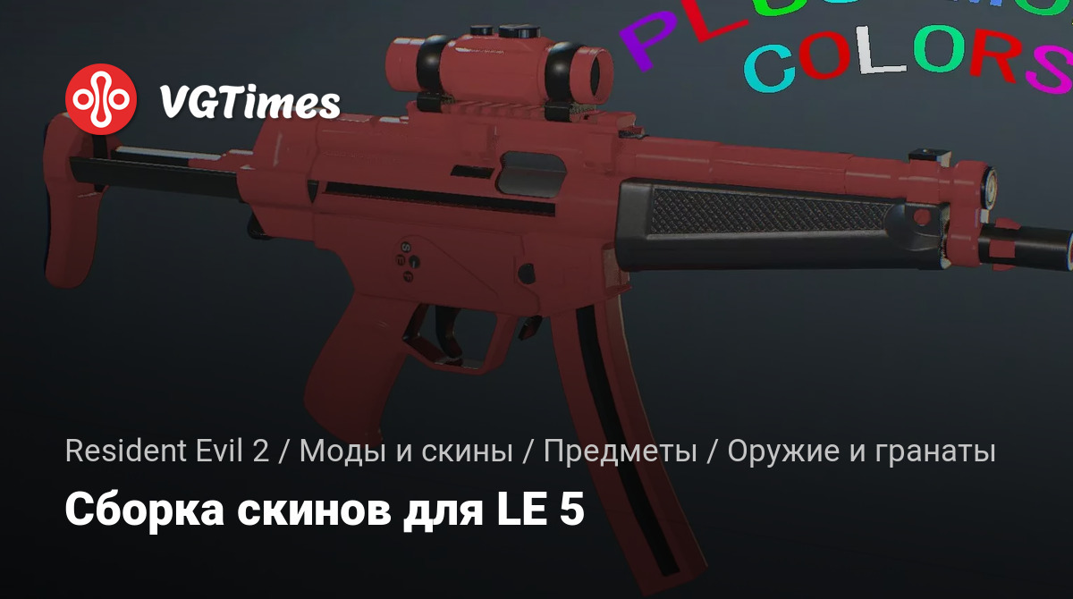 Небольшая сборка скинов для Resident Evil 2, которые предназначены на оружие LE 5. Здесь вы найдете скины с использование однотонных цветов.