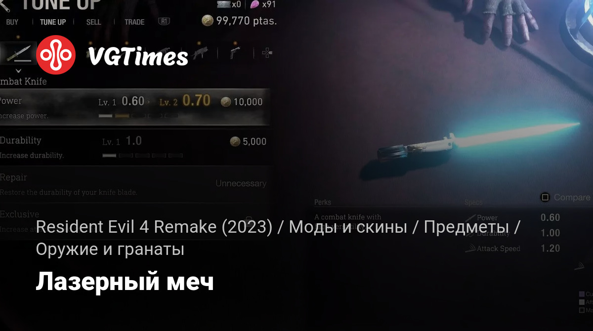 Заменяет боевой нож на лазерный меч Энакина Скайуокера.