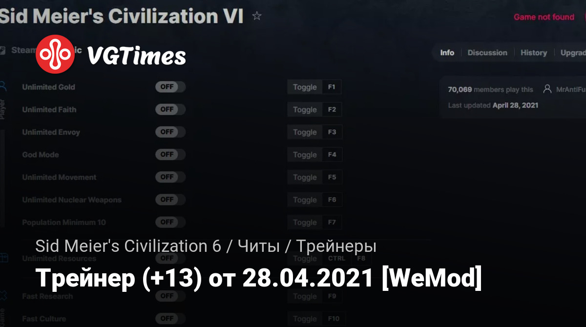 Для использования трейнера необходима установка системы WeMod (требуется онлайн подключение).