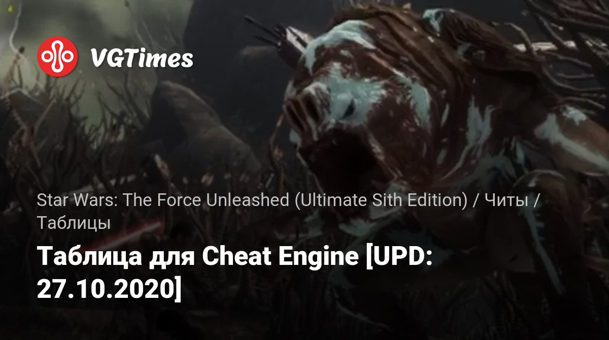 Oyunlar Star Wars: The Force Unleashed (Ultimate Sith Edition) Dosyalar Tablolar Таблица для Cheat Engine [UPD: 27.10.2020]