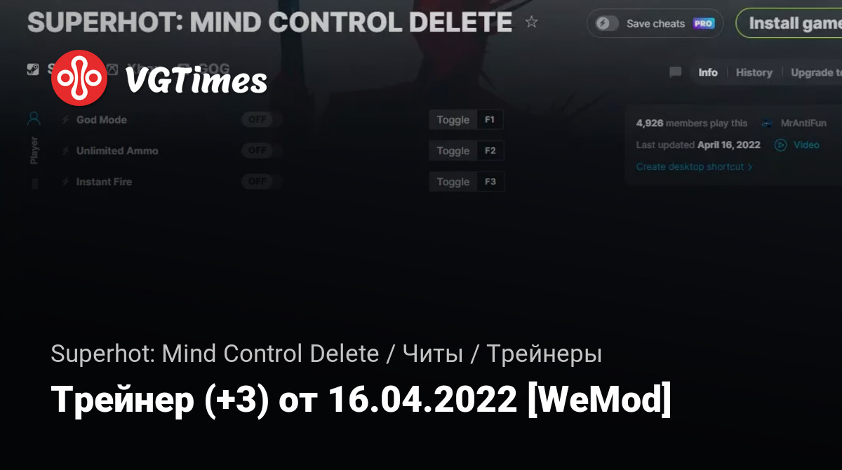 Для использования трейнера необходима установка системы WeMod (требуется онлайн подключение).