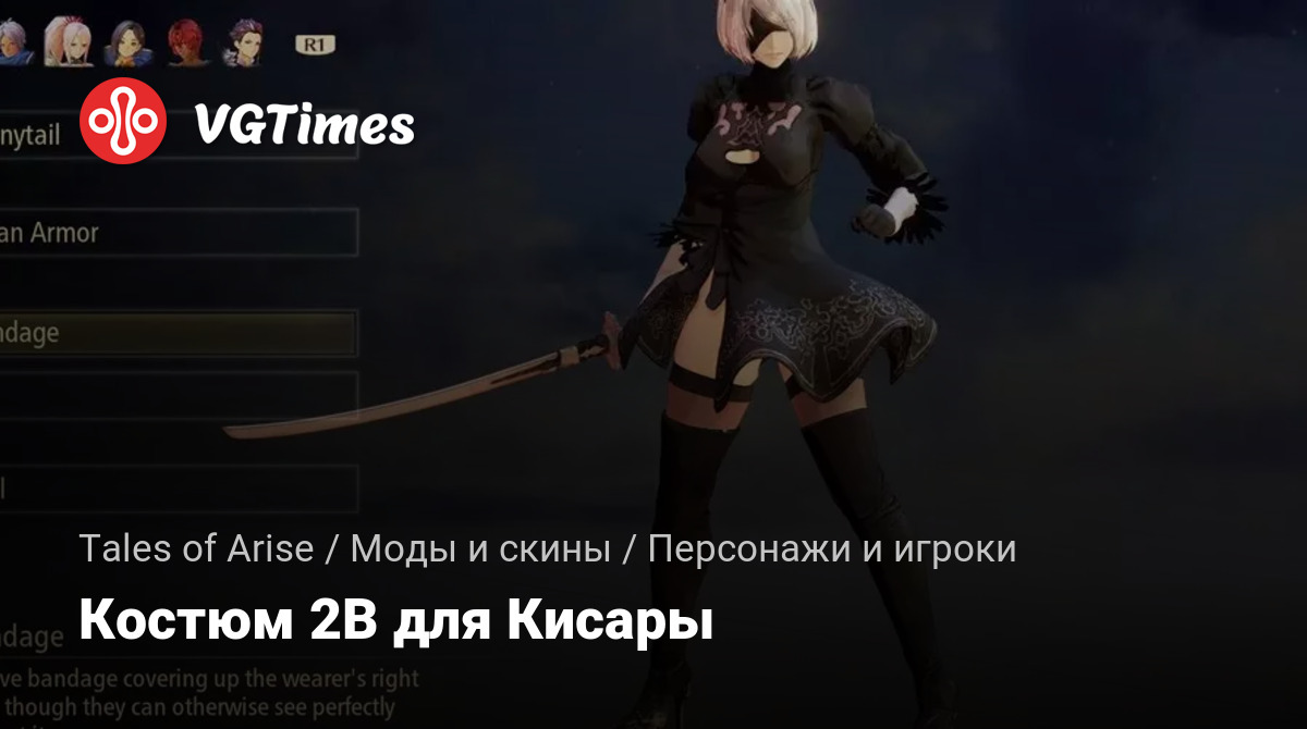 Kisara 2B 1 — заменяет броню гвардейца на 2B с юбкой. Включает текстуры и маску для лица. Требуется для других модов костюмов.