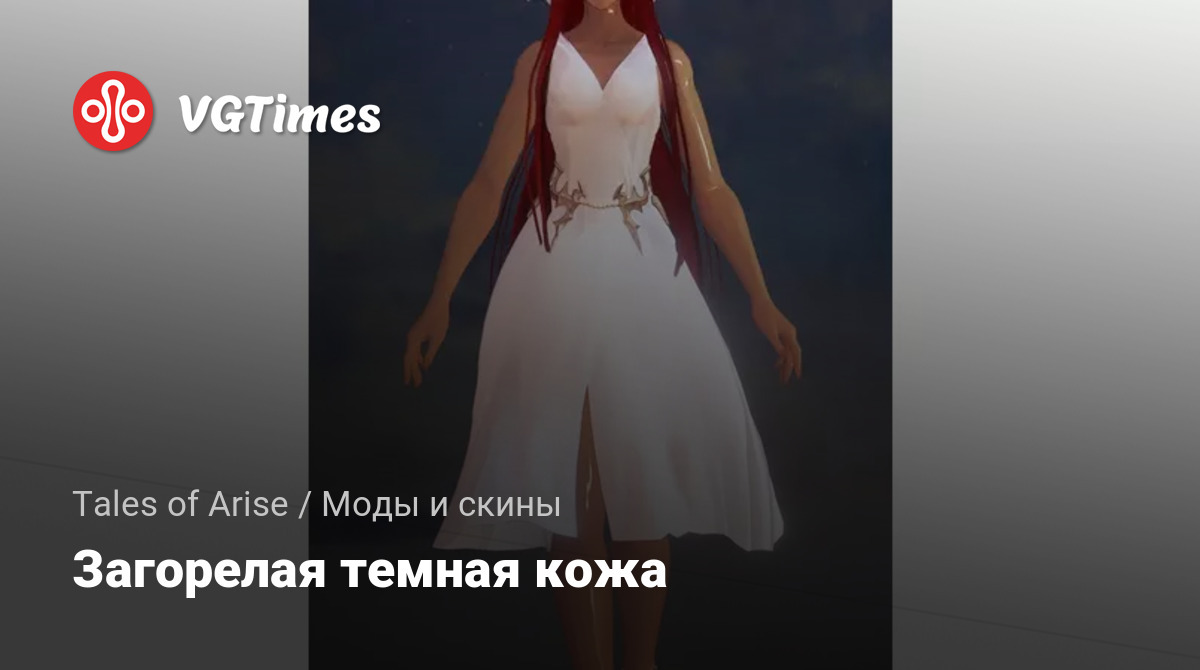 Дает всем стандартным и DLC-костюмам загорелую/темную кожу для персонажей, кроме Дохалима. Для установки поместите файл pak в Steam/steamapps/common/Tales of Arise/Arise/Content/Paks/ ~mods, если у вас нет папки ~mods, создайте его в папке Paks и поместите файлы внутри.