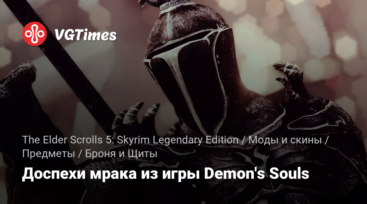 Этот мод добавляет новый комплект брони из игры Demon's Souls. Добавлены дополнительные элементы: перекрашивание набора мрака, мрачный щит, рапира, шотель и кинжал парирования (для левой руки) — классический набор оружия для NPC.