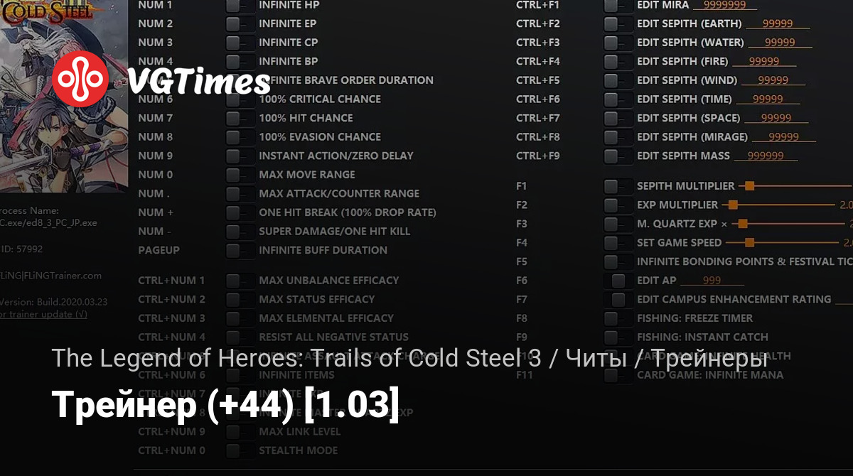 Oyunlar The Legend of Heroes: Trails of Cold Steel 3 Dosyalar Eğitmenler Трейнер (+44) [1.03]