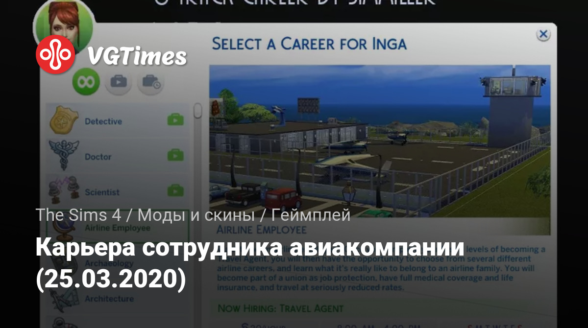 Это 6-путевая карьера, что означает, что после того, как вы закончите первые 3 уровня сотрудника авиакомпании (в основном как турагент), у вас есть 6 карьер на выбор, каждая из которых имеет 7 собственных уровней. Вы будете работать для Sim Air, на которую ссылается создатель Sims 2 crocobaura, для непрерывности.