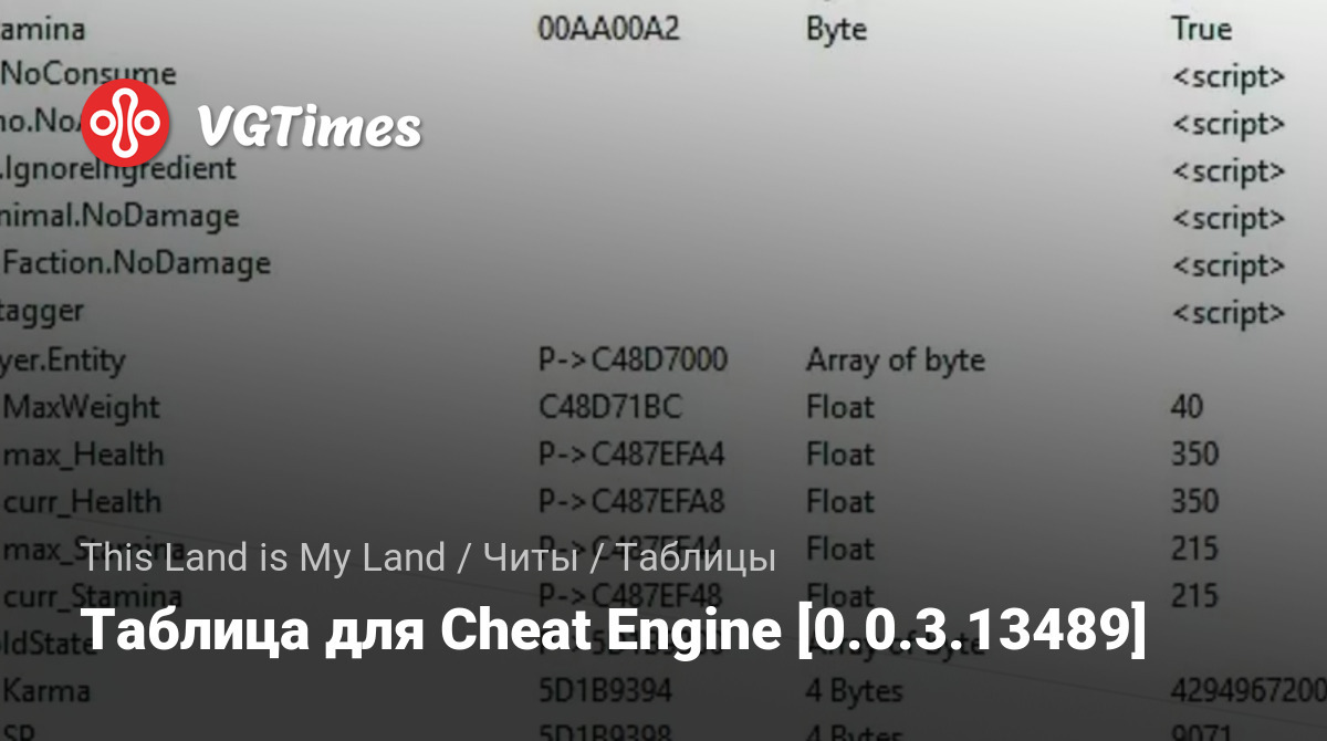 Таблица для Cheat Engine [0.0.3.13489]