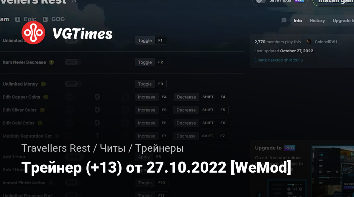 Для использования трейнера необходима установка системы WeMod (требуется онлайн подключение).