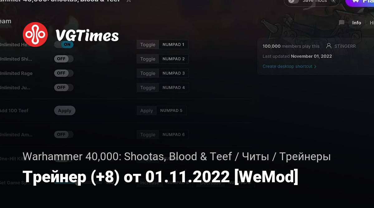 Трейнер (+8) от 01.11.2022 [WeMod]