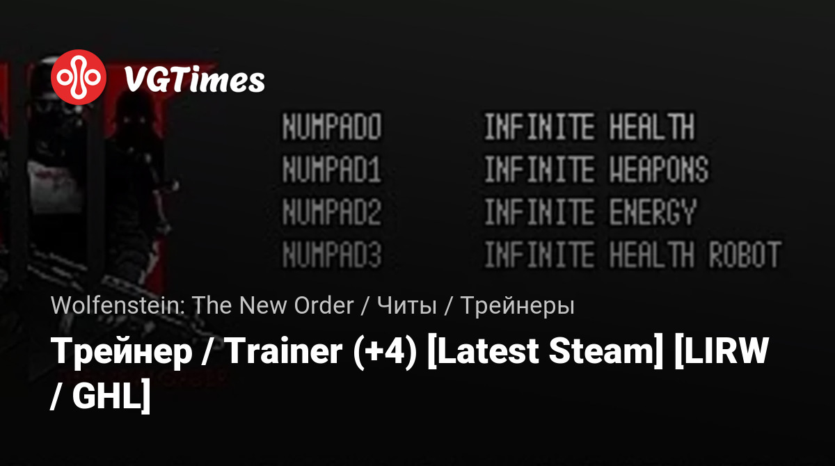 Oyunlar Wolfenstein: The New Order Dosyalar Eğitmenler Трейнер / Trainer (+4) [Latest Steam] [LIRW / GHL]