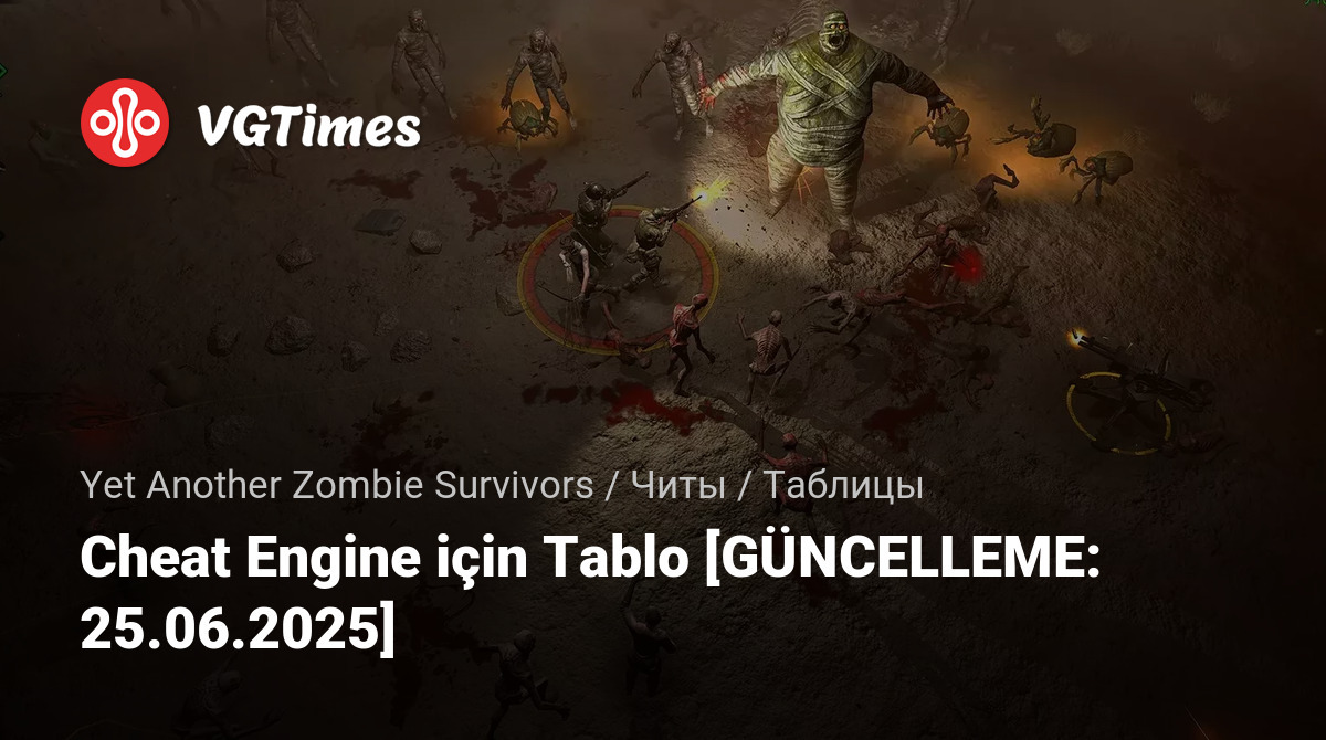 Oyunlar Yet Another Zombie Survivors Dosyalar Tablolar Cheat Engine için Tablo [GÜNCELLEME: 25.06.2025]