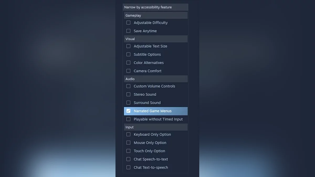 Steam mağazası ve masaüstü istemcisi, oyuncuların erişilebilirlik desteği sunan oyunları bulmalarına yardımcı olabilecek. Eğer oyununuz erişilebilirlik özelliklerine sahipse, bu bilgiyi artık Steamworks 'mağazayı düzenle' bölümüne girebilirsiniz.