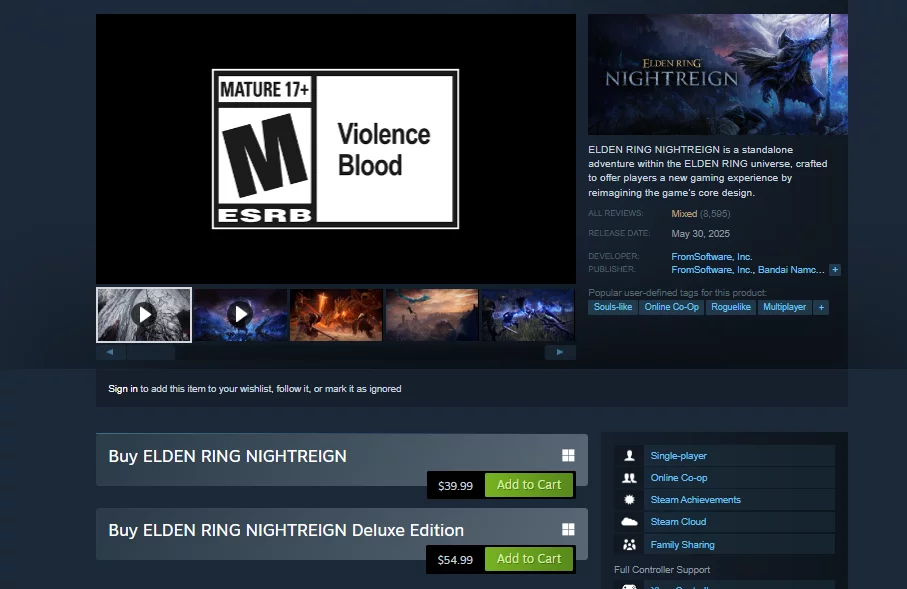 Çıkışından 24 saatten kısa bir süre sonra, Elden Ring Nightreign , Steam'de binlerce oyuncu yorumu aldı. Yeni FromSoftware oyunu geniş bir kitleye ulaşsa da, herkes tarafından olumlu karşılanmadı.