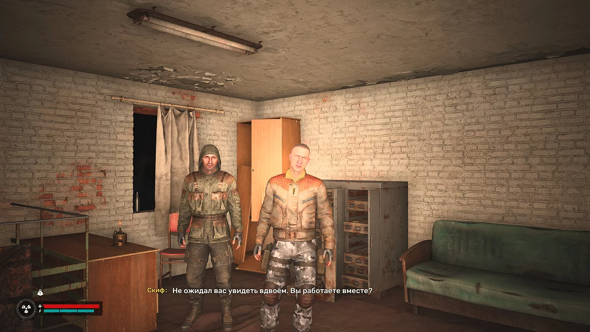 Oraya ulaştığınızda, Stalker'ın Scar ile çalıştığını öğreneceksiniz. Onlar Skif'ten yardım ister ve NIICHAVO'ya sızmayı önerirler. Diyalog sırasında, Varta üssü saldırır. Savaşta kimin tarafını tutacağınıza karar vermeniz gerekiyor — Iskra mı yoksa Varta mı. Biz Iskra'yı seçtik.