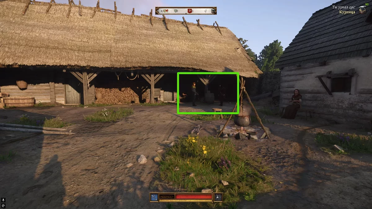 After the conversation, exit to the main street of the settlement and head to the smelting plant. The thick smoke will serve as a landmark — it can be seen from anywhere in the village. You should go through the courtyard of the smelting plant and talk to one of the smelters waiting by the fire.