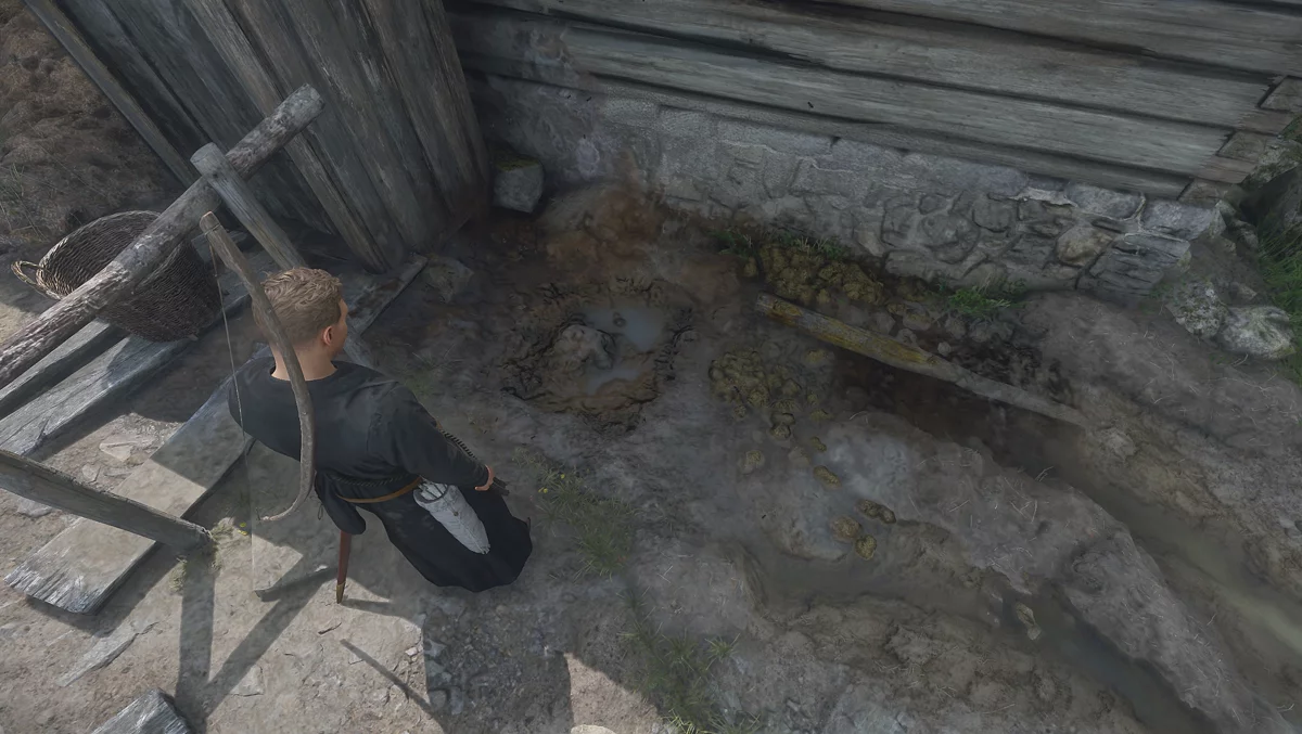 Odun yığınının arkasında, umumi tuvaleti bulun. Onun solunda bir kürek alabilirsiniz. Kuyu oluşturmak için kabinin sağında kazmanız gerekiyor. Bu görevi tamamladıktan sonra, kahraman hoş olmayan bir koku yayacaktır.