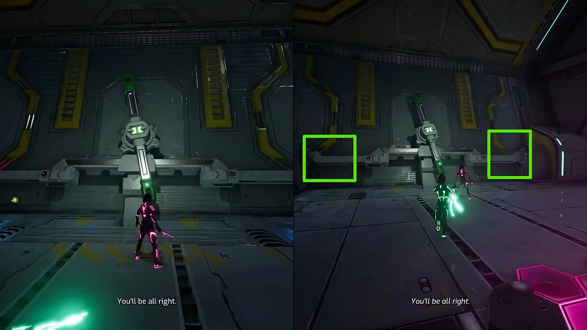 Uzun bir kesim sahnesinin ardından, kahramanlar yeni cihazlara sahip olacak: sağdaki oyuncu nesneleri kaldırabilir, soldaki oyuncu ise kapıları açmak ve diğer mekanizmalarla etkileşimde bulunmak için yakın dövüş silahlarını kullanabilir. Örneğin, konumun en başında, kapıdaki enerji modülünün kapağını koparın ve onu saldırarak partnerin kaldırıp geçişi açmasını sağlayın.