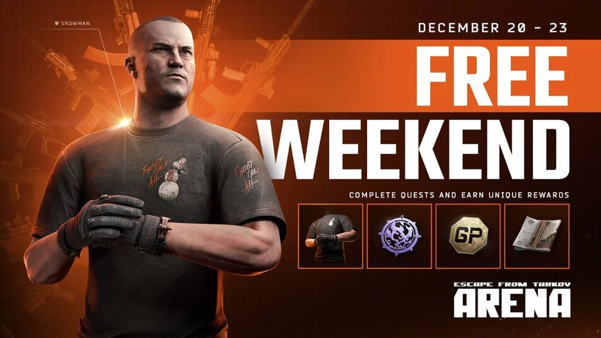 Oturum tabanlı nişancı Escape from Tarkov: Arena yaratıcıları, ücretsiz bir hafta sonunun başladığını duyurdu. Oyuncular, 23 Aralık'a kadar saat 9:00 GMT'de aksiyona katılabilirler. Oyun istemcisi, resmi web sitesi başlatıcısı aracılığıyla indirilebilir.