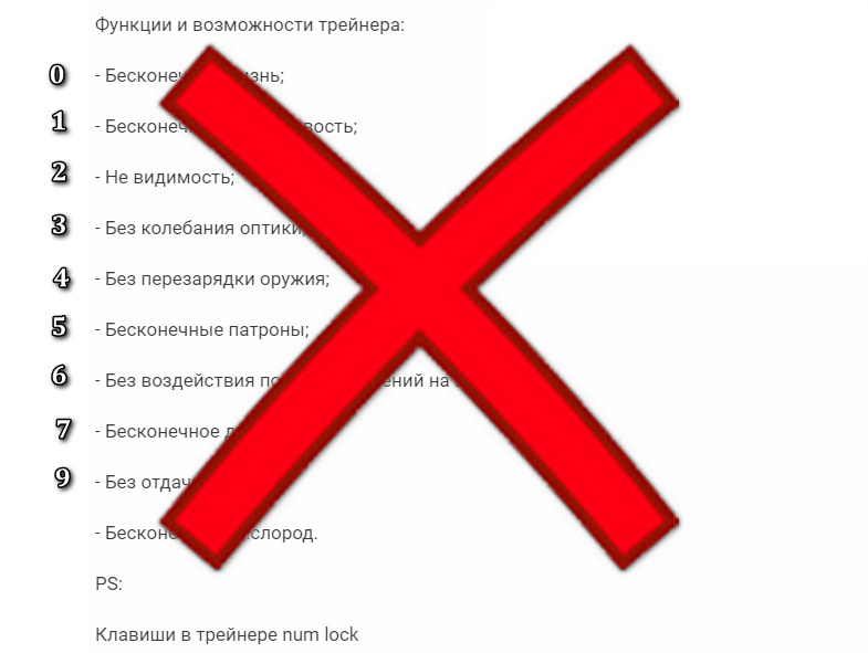 Опции в трейнере не соответствуют опциям в описании.